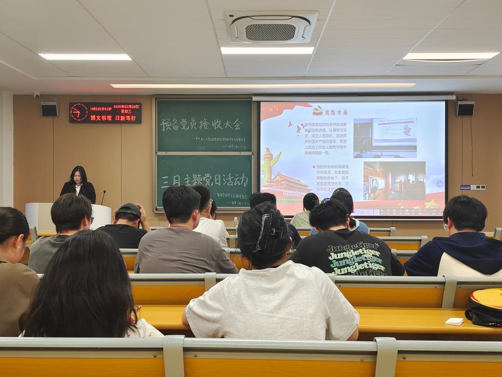 本网讯(通讯员王希若)2025年3月26日18:40,管理学院员工党支部于A-402S召开毕业生预备党员接收大会,讨论关于严语婷同志接收为预备党员。会议由何培茹同志主持,支部其他党员同志及入党介绍人参与此次会议。