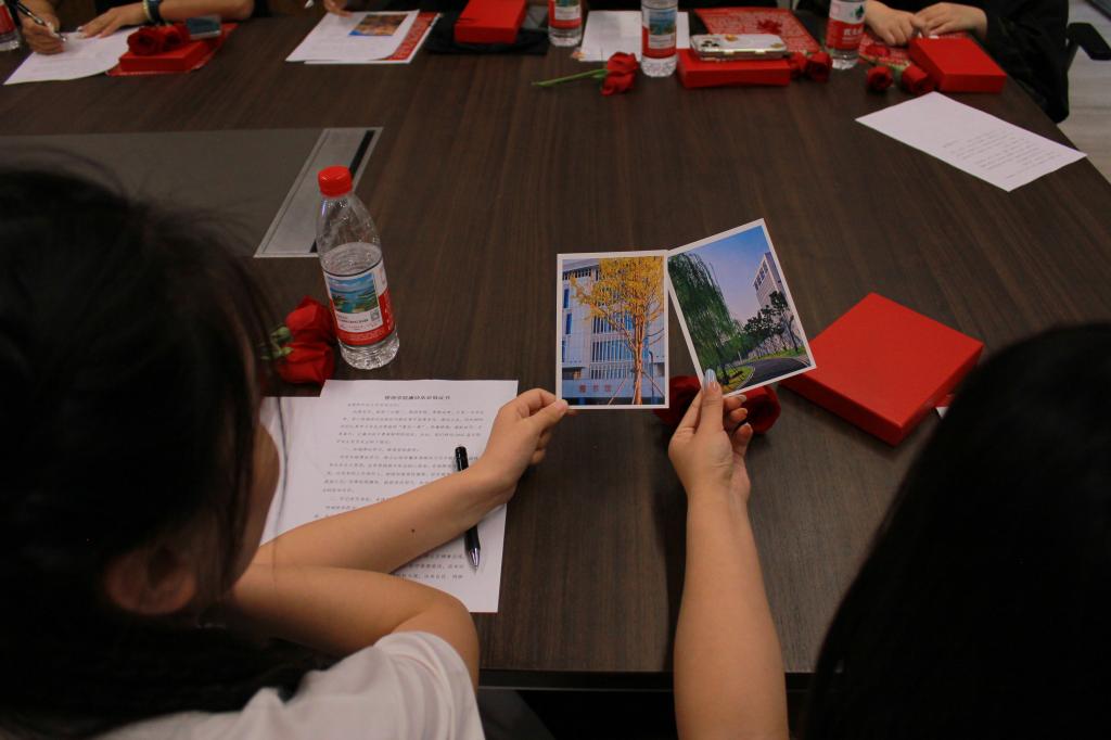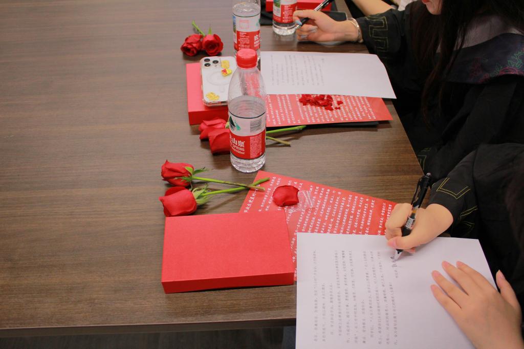 在“寄语未来”环节中,党员们书写明信片互赠留念,部分赠予师生代表。一名毕业生党员感慨道:“方寸纸笺虽小,却承载着四年青春记忆,也寄托着对未来的无限期待。”这一环节以温情为纽带,既凝聚了毕业生对母校的眷恋,也为后辈学子埋下传承与奋斗的种子。