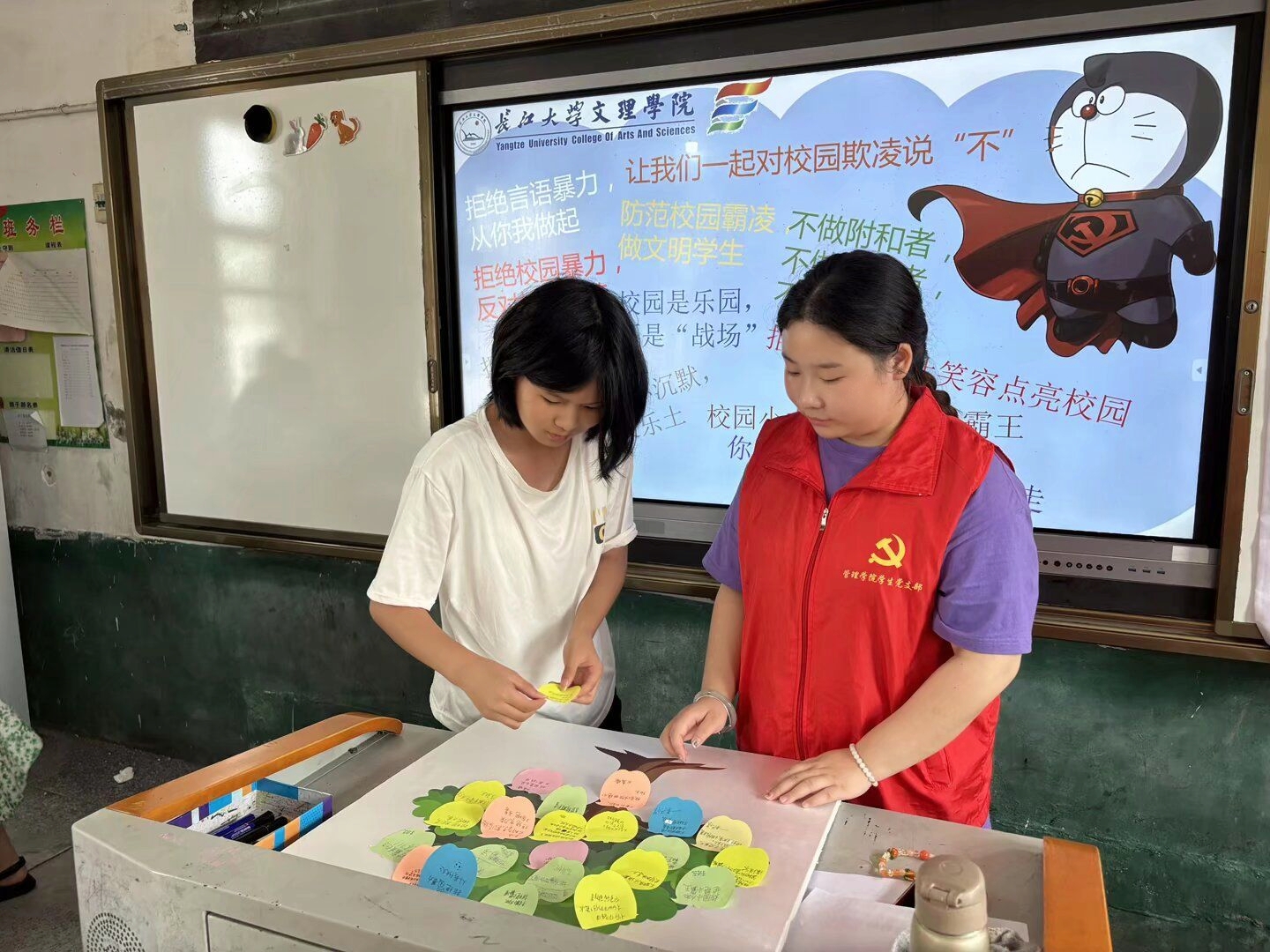 其次,我们的活动开展时间目前虽然只有五天,但是我们的团队之间已形成了良好的默契关系。这五天里大家不仅根据起初的分工井然有序地工作,还每天进行复盘,基本做到一有需求就主动补位的动向;每天下课后自发地打扫教室卫生,整理课桌;始终保持一致的原则处理事情,做到互帮互助。