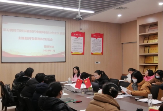 首先,管理学院教工党支部书记杨璐老师代表支委会做2023年度组织生活会主题报告,重点摆查支委会中理论学习、政治素质、担当作为、工作作风等方面存在的突出问题。