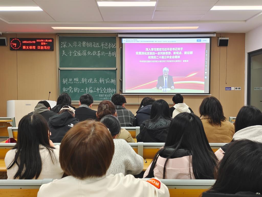 习近平总书记提出的一系列关于全面深化改革的新思想、新观点、新论断,以及党的二十届三中全会所强调的核心精神,明确指出改革应牢牢坚持党的领导,始终以人民为中心,勇于创新开拓,并在法治的框架内稳步前行。在未来,管理学院员工党支部将深刻领会并践行这些理念和原则,将全面深化改革进行到底,为国家繁荣发展贡献力量。