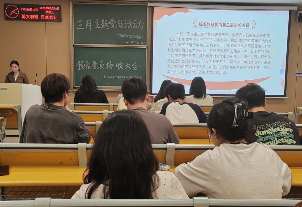 本网讯(通讯员吴宝兰)管理学院员工党支部于3月26日晚19:00,在教学楼A402召开三月主题党日活动,管理学院全体党员参加。此次会议的主要内容是学习《中国共产党章程》(第四章),学习习近平总书记在看望参加政协会议的民盟民进教育界委员时的重要讲话。会议由李琪同志主持。