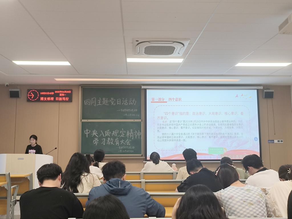 本网讯(通讯员李琪)管理学院员工党支部于4月28日晚18:30,在教学楼A402召开四月主题党日活动,管理学院全体党员参加。此次会议的主要内容是“开展深入贯彻中央八项规定精神学习教育”。会议由李琪同志主持。