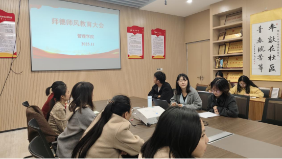 接着,在11月党风廉政建设专题会议上,全体教职员工集中学习习近平总书记关于全面从严治党、教育强国建设的最新重要论述。党总支书记胡沿林全面梳理学院年度党风廉政建设任务推进情况,重点分析年末科研经费结算、评奖评优、考核评价等领域廉政风险隐患,研究部署年末冲刺阶段及下一年度重点工作。