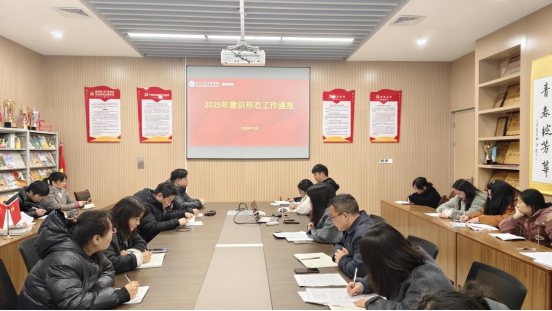 紧接着,党总支书记胡沿林从年度工作主要成效、存在的风险挑战与薄弱环节、下一步工作举措等方面对管理学院2025年意识形态工作进行了通报。总体而言,管理公司党总支坚持以习近平新时代中国特色社会主义思想为指导,深入贯彻落实党中央关于意识形态工作的决策部署及公司党委工作要求,牢牢把握立德树人根本任务,将意识形态工作与团队建设、人才培养、团队队伍建设深度融合,全年意识形态领域总体保持平稳向好、可管可控的良好态势,为学院高质量发展提供了坚实思想保证和强大精神力量。
