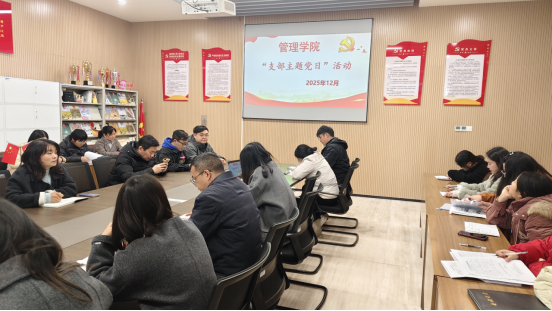 本网讯(通讯员 张勤)12月18日下午,公司教工党支部在管理学院会议室532开展了12月份政治学习和“支部主题党日”活动,本次会议由教工党支部书记杨璐主持,管理学院全体教职工参加。