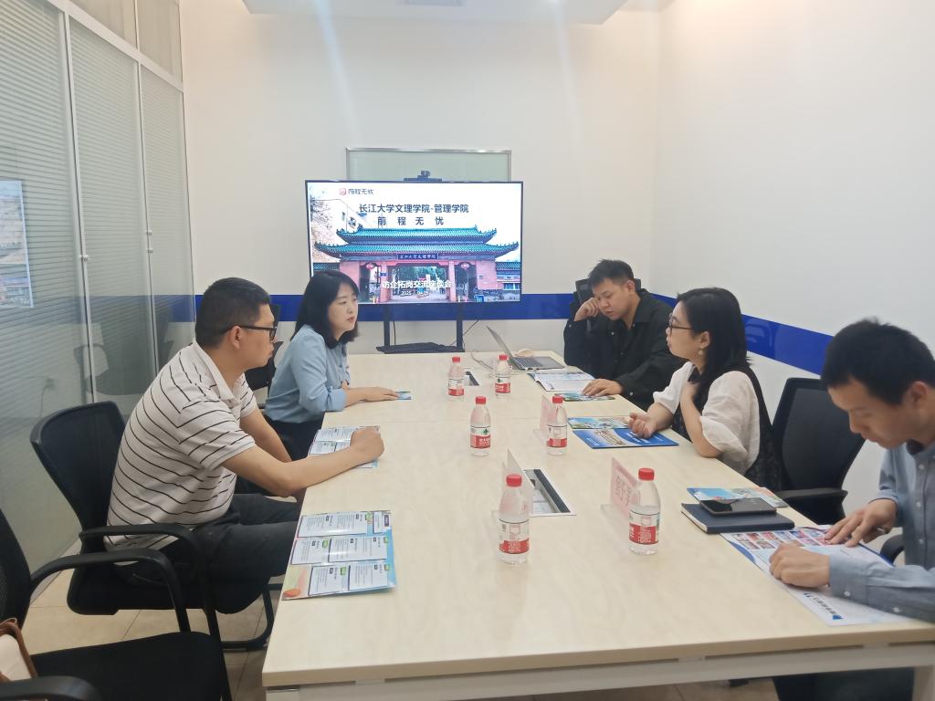 武汉前程无忧公司就当前公司的业务和发展前景进行了详细的介绍,其公司在职位设置上与公司专业的契合度较高,希望与公司毕业生在就业和实习达成合作意向。同时应胡沿林书记的邀请,其相关负责人会莅临公司参加管理学院举办的求职大赛,为有求职需求的员工提供更加专业的就业指导,加强了校企之间的合作。
