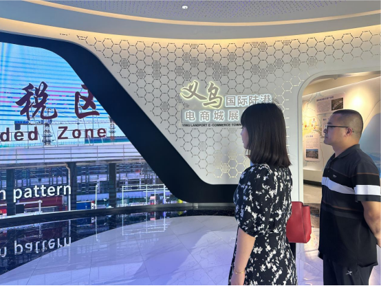 随后,团队到访义乌国际陆港电商城,实地考察了电商产业集聚区的发展生态与运营模式。电商城负责人介绍了其作为国际贸易综合服务平台,在跨境电商、物流供应链、电商孵化等方面的重要功能。双方重点探讨了电商及物流管理领域的人才需求特点,并就建立员工实践基地、引入行业导师参与教学等合作方向交换了意见,期待共同助力员工对接电商前沿实务。