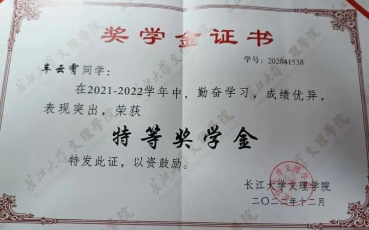 2021年12月,获学院三等奖学金,获学院“优秀员工干部”称号,参加“青春与祖国同行”获优秀奖,通过英语四级考试