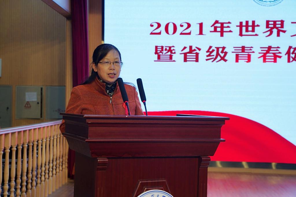 本网讯(通讯员 罗青玲 夏欣)2021年11月28日,为了宣传青春健康知识,让同学们更加了解和预防艾滋病,我社积极响应学院号召举办了“2021年世界艾滋病日主题宣传活动暨青春健康示范基地授牌仪式”。省计生协专职副会长张友芳、省计生协办公室一级主任科员王自伟、区政府副区长关勇、市计划生育协会专职副会长龚汉莉、市计划生育协会秘书长马俊、市计划生育协会科长罗德莹、市疾控中心纪委书记艾军、市疾控中心性病艾滋病预防控制所所长刘锐、市疾控中心性病艾滋病预防控制所医生李舒超、市公安局禁毒支队大队长张溯江、区卫健局党组书记、局长熊志波、区卫健局党组党组成员李翔、荆州公司党委办公室主任邹发伟、荆州学院院团委副科长李红、学院副经理康建虎、公司党委副书记于永伟、学院员工工作部部长罗婷、学院团委书记陈海波、管理系系主任陈元芳、管理系党总支书记沈爱龙、管理系副主任姚毅、管理系党总支副书记胡沿林老师及全体员工都参与的本次活动。