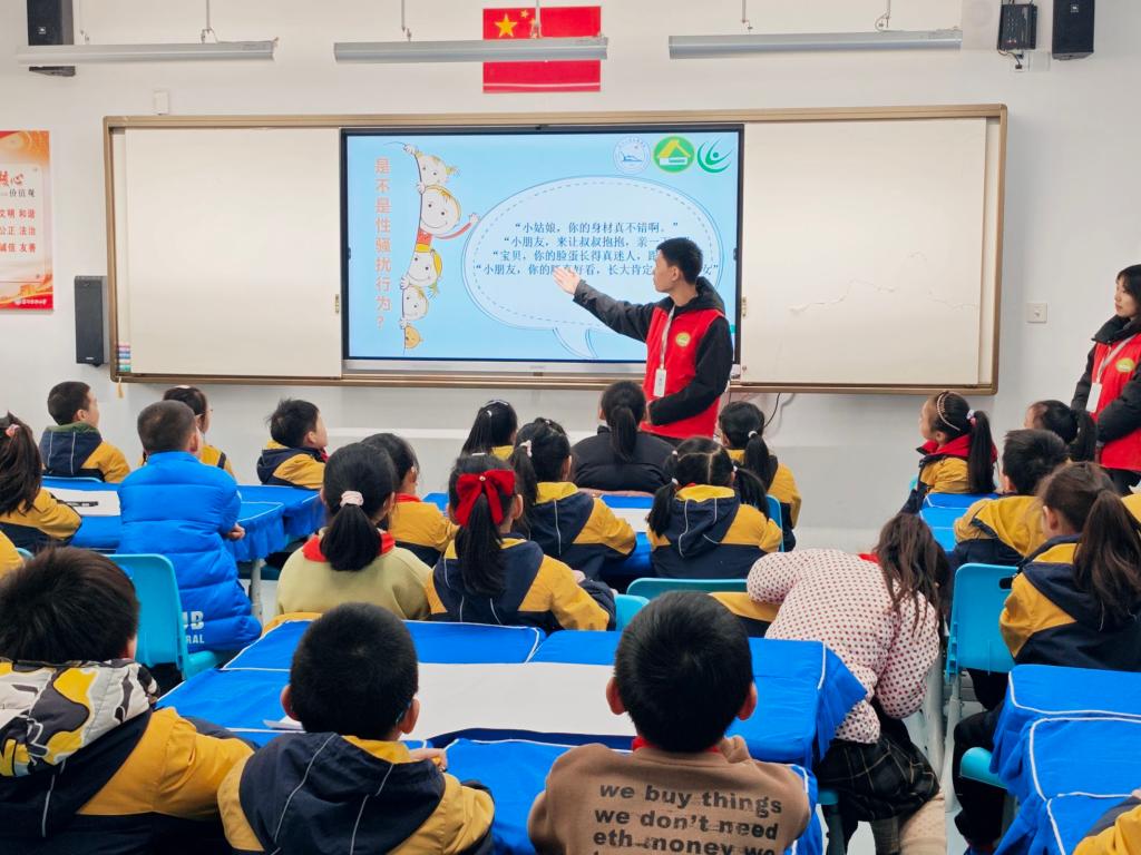 在这次活动中,荆州实验小学的员工被分批带入体育馆,体验VR眼镜,社员们为小朋友们介绍VR眼镜是什么,怎么用,为他们答疑解惑。同时,部分社员进入教室,开展讲座,讲座的开场由主持人胡子涛带着荆州实验小学的小朋友们进行暖场小游戏,带动小朋友们的情绪,活跃气氛,暖场小游戏结束后,就开始了正式的讲座,为小朋友们讲解了什么是性骚扰,怎么应对性骚扰,如何保护自己等问题,在这过程中,小朋友们进行讨论,更深刻了解了性骚扰相关知识。