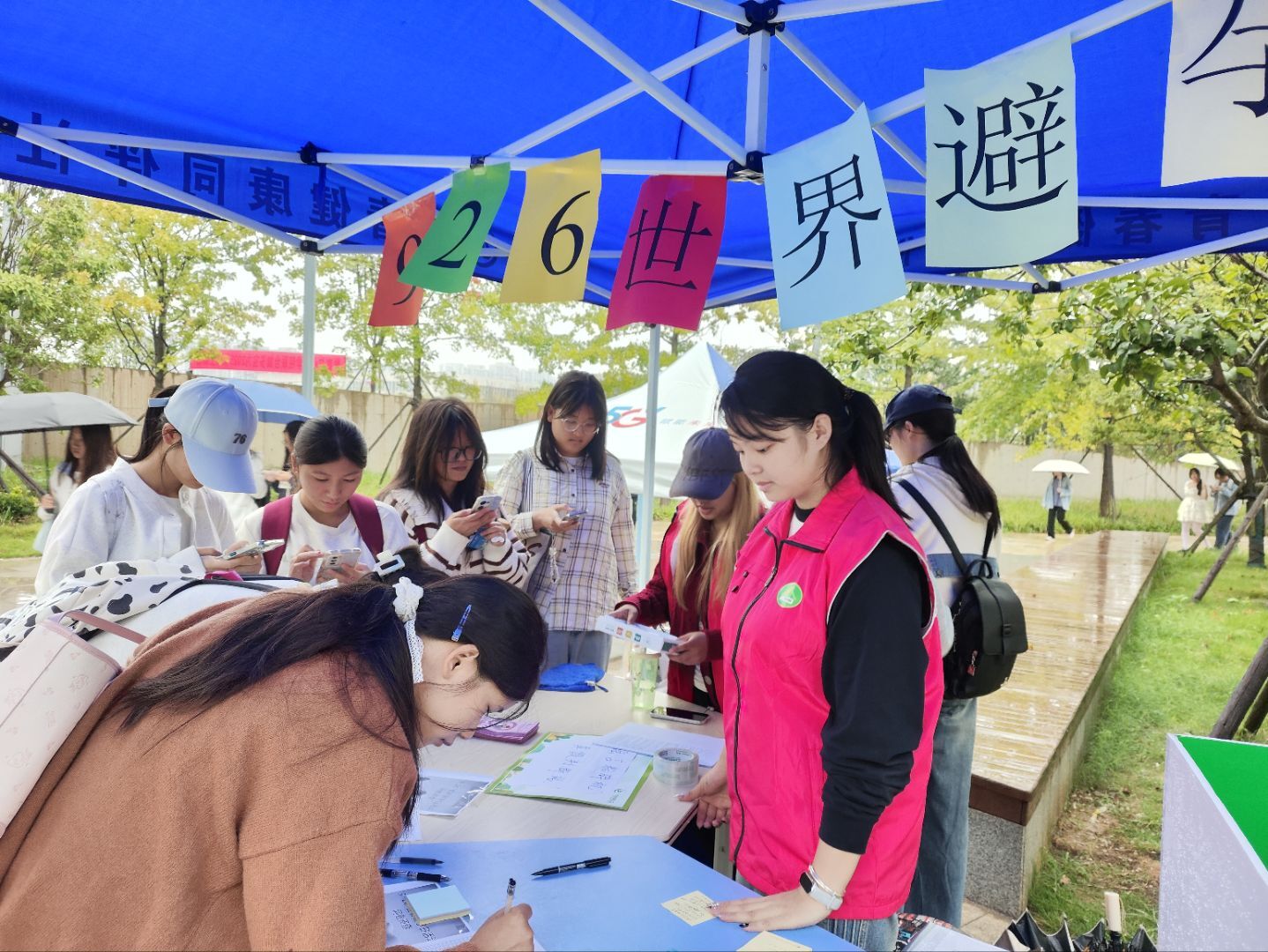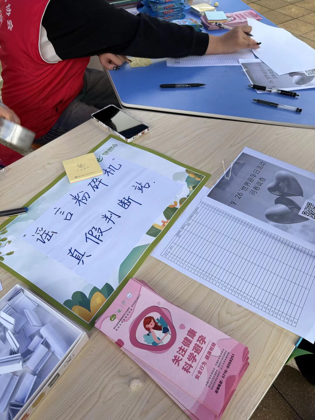 一旁的“为爱负责”签名承诺板前同样气氛热烈。同学们在了解世界避孕日的核心理念后,郑重签下姓名,并写下个人健康宣言贴于板上,共同许下对己、对伴侣健康负责的承诺。参与者还获得了一份精心制作的宣传折页,其中汇总了实用避孕知识及校内外求助渠道,确保了信息传递的延续性。