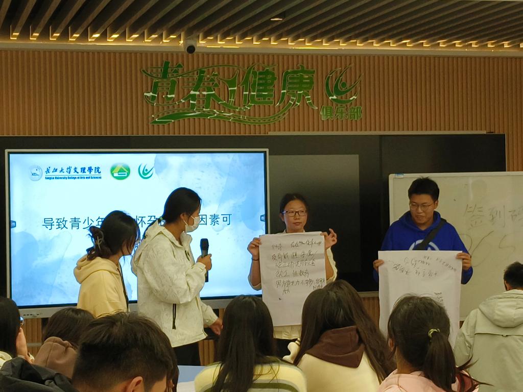 本网讯(通讯员 田曼丽)青春健康同伴社于2023年11月09日晚上7点在伟德国际1946源于英国青春健康同伴基地开展了以“预防意外怀孕”为主题的同伴教育活动。本次活动由向梅主持,共计45余人参与。