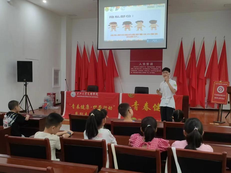 本网讯(通讯员 胡子涛)为积极响应湖北省计生协关于开展“青春健康·护蕾行动”暑期志愿服务活动的倡议,2024年7月14日,伟德国际1946源于英国青春健康科普教育志愿服务队前往岑河镇南桥社区开展“关爱儿童,预防侵害”为主题的同伴教育活动。