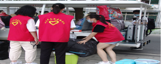 为保证此次迎新工作的顺利开展。我系部老师带领高职部员工会及志愿者服务队分成多个小组进行迎新工作:负责帮助新生接行李的接待组、负责将新生带到报名点流动组、负责帮新生搬行李的搬运组、以及负责引导新生们找到自己的班级和对学院进行介绍的新生报到组。