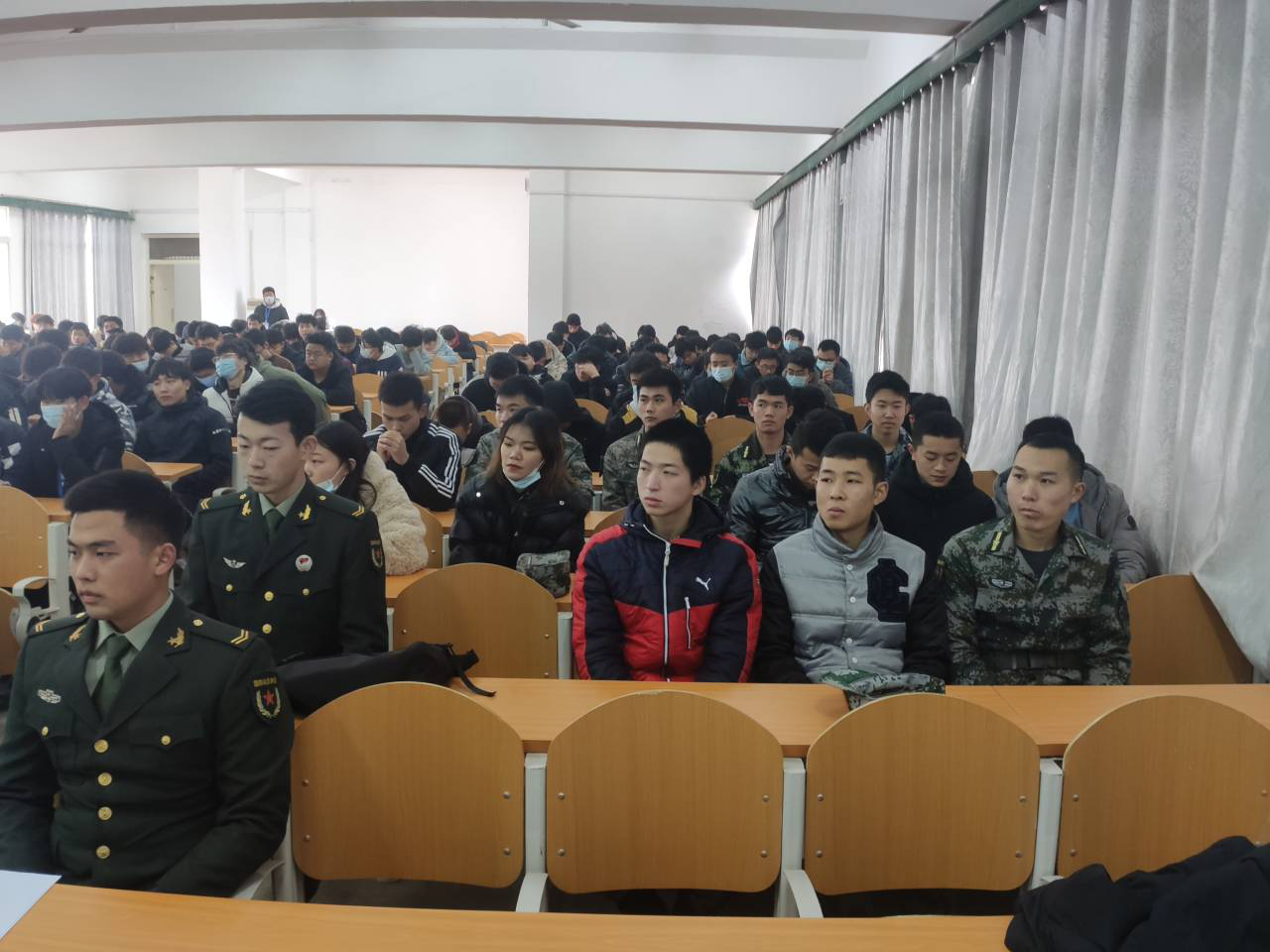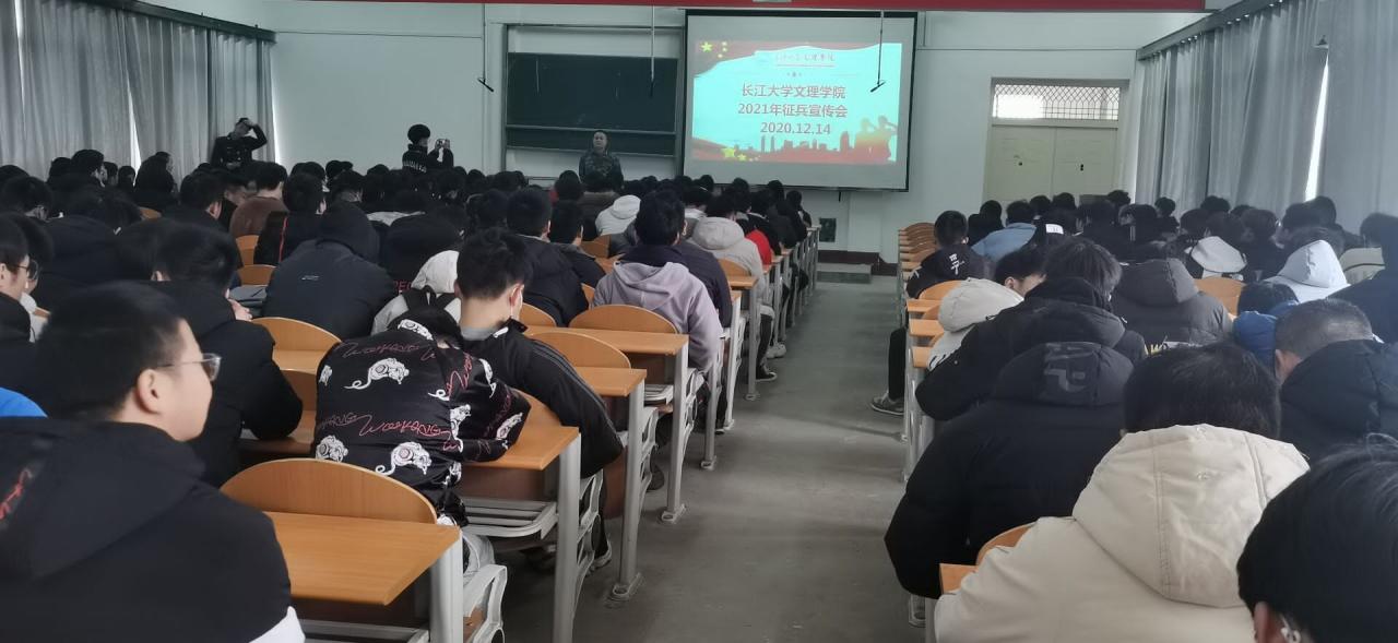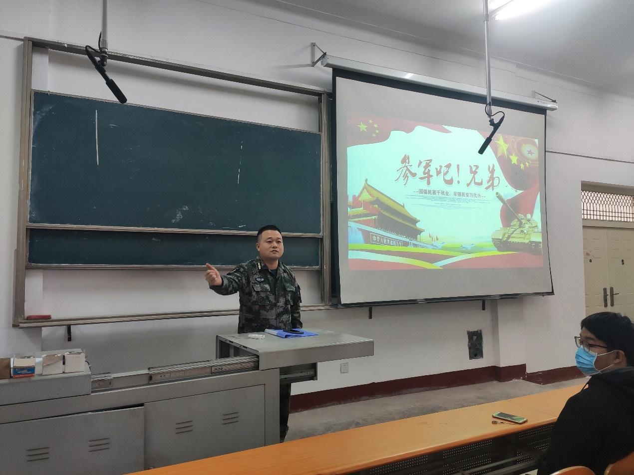 本讯报(通讯员 周云霖)根据教育部、中央军委国防动员部2021年老员工征兵工作要求和湖北省教育厅、省征兵办《关于做好2021年老员工征兵工作的通知》精神,在疫情防控常态化工作背景下,高职部开展了征兵宣传动员工作。12月14日12:30在四教500开展2021年春季征兵宣传会。学工部负责人王大专老师,在校退伍军人付能鑫,戚翔等以及高职部大一大二全体男生参加了此次征兵宣传大会