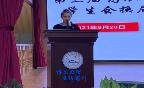 大会第四项:第三届高职部团总支员工会主席团成员代表周海静上台发言,她表示在员工会是一个锻炼人的地方,在员工会改掉了自己的不足之处,学会的很多。同时也希望新一届的员工会能更加努力,展示一个不一样的风采。