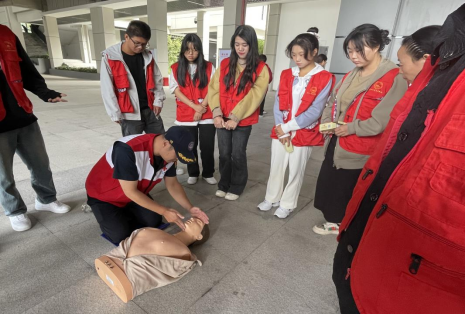 活动的开始,红十字应急救护培训师为学院师生、志愿者进行了知识普及和培训,讲授了红十字运动的起源及发展史、现场心肺复苏操作步骤等基本理论知识。