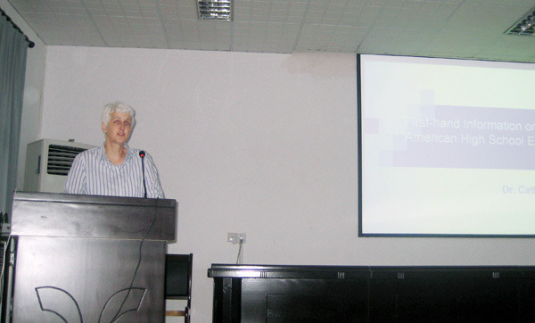 本网讯(员工记者 李妍)3月27日上午,一场主题为“美国高中教育亲历所得”的讲座在学院学术报告厅展开。来自美国的凯茜·威特博士就美国教育制度的特点及她从教15年的亲历为同学们带来了一场别开生面的听觉盛宴。