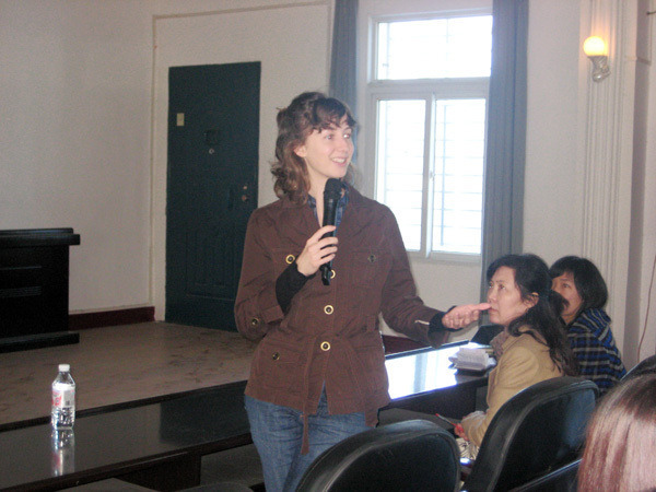 威特博士以一句亲切的问候作为开场白,结合自己的从教经历,她指出,美国教育非常注重创造性思维的培养,给员工自由空间,这样有利于员工的多样性发展,培养综合素质,但在体育锻炼方面,美国需要借鉴中国经验。威特博士还介绍了美国五种类型的教育模式,公立大学、私立大学、教会大学、公立社区大学、家庭教学等,她用身边的事例为同学们详细讲解了家庭教学模式。