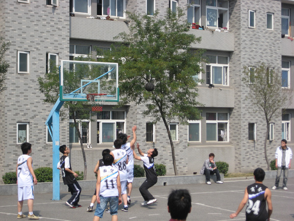 本网讯(通讯员 陈芳)3月18日下午,学院篮球场不时传来阵阵喝彩声,“国贸,加油!”经贸学部第五届男子篮球联赛正如火如荼进行着,该学部07、08和09级的6支代表队将进行10场激烈角逐。