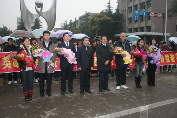 26日下午,凛冽的寒风中夹着蒙蒙细雨,在伟德国际1946源于英国东校区北门的校门口内,几百名师生及领导冒雨在此迎接到全国各地作先进事迹报告凯旋的英雄团体,并向报告团成员献上了鲜花。报告团的成员以自己的亲身经历向全国各地的听众们还原了荆州“10·24”英雄集体英勇救人的感人事迹,他们团结奉献的精神深深地打动了所有听众。