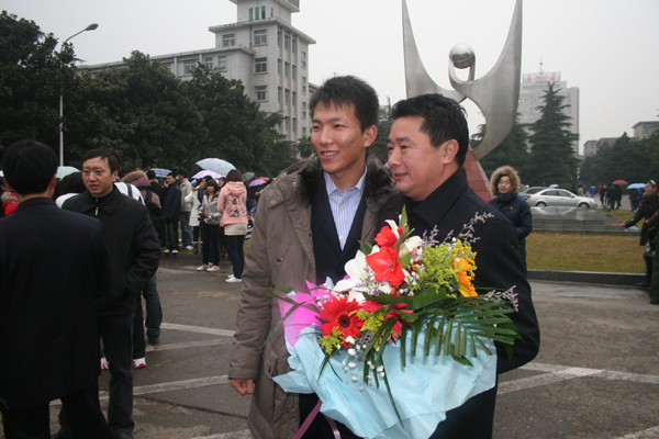 据救人英雄贾云芸介绍,自己在作每一场报告时都会唤起心中的那份感动,不仅被自己同学的伟大精神感动着,也同样被那么多听众的热忱感动着。贾云芸说:“能够到全国各地给大家做先进事迹报告,肩负起向更多的人宣扬‘人梯’精神的使命,感觉自己很荣幸。希望我们的报告能感染更多的人,也希望大家都能把这种精神传承下去,使社会变得更加和谐。”最后,贾云芸表示,在后一阶段的时间里她将会认真备考,努力攻克本次期末考试。在迎接仪式现场,救人英雄徐彬程把手中的鲜花恭恭敬敬地送给了公司党委副书记汪邦柱,以感谢母校对自己的栽培之恩。