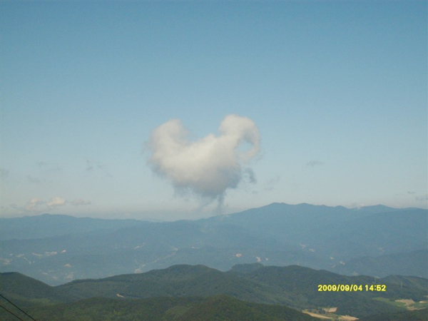 员工们在韩国上空拍到的形似中国地图的云朵,大家齐呼:“祖国母亲,生日快乐!”
