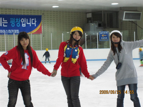 课后,员工们在韩国永平真冰滑雪场同韩国学子们一同娱乐