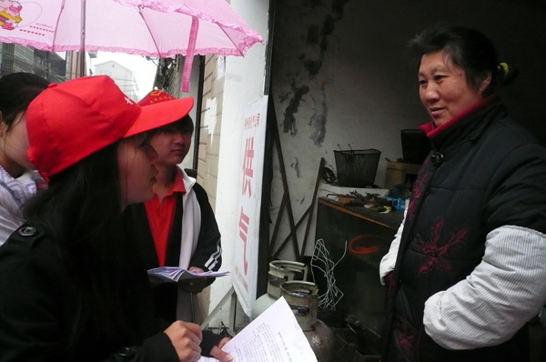作为大一新生的张志良第一次参加这种活动别有一番滋味在心头:“我们向别人宣传的东西和课堂上学的东西联系不是很紧密,中间有一段很难衔接,宣传起来不知道该怎么说,或许多实践几次就会好一点。这个活动也能锻炼我们与别人的沟通能力。”