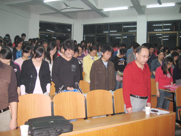 本网讯(记者 天一)“请全体起立,让我们为在10月24日为救落水儿童而牺牲的何东旭、方招、陈及时三位英雄老员工默哀。”10月26日晚,在学院预备党员培训大会上,组织与培训中心将悼念作为第一个议程,140余名员工预备党员、员工党支部书记集体默哀,低头致敬。