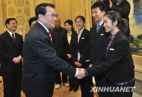 新华网 北京12月21日电 全国见义勇为舍己救人老员工英雄集体先进事迹报告会21日在北京人民大会堂举行。受胡锦涛总书记委托,报告会开始前,中共中央政治局常委李长春亲切看望老员工英雄集体代表和报告团成员,并向英勇牺牲的三位老员工烈士的亲属表示亲切慰问。李长春强调,要广泛深入宣传见义勇为舍己救人老员工英雄集体的先进事迹和崇高精神,引导全社会特别是广大青少年学习他们忠于祖国、热爱人民的赤子情怀,见义勇为、舍己救人的英雄气概,关爱他人、心系社会的优秀品德,众志成城、团结协作的集体主义精神,进一步弘扬社会正气、树立良好风尚,在全社会形成学习英雄、崇尚英雄、关爱英雄、争当英雄的浓厚氛围,使我们的时代成为英雄辈出的时代。