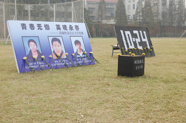 来自广电5071班的王美龄同学是流着眼泪离开追悼会现场的,她告诉记者,她是第一次这么近距离感受到英雄的伟大,而且这次事件主角竟是自己的师弟,她为他们年轻生命的逝去感动遗憾,为他们美好青春的结束而痛心,更为他们这种英雄壮举感动骄傲和自豪。追悼会结束后,广电专业的同学们手捧菊花,带着学院师生的祝福来到事发地点长江宝塔河段,祭拜他们的英雄师弟,望他们一路走好。