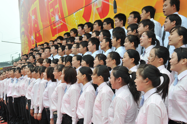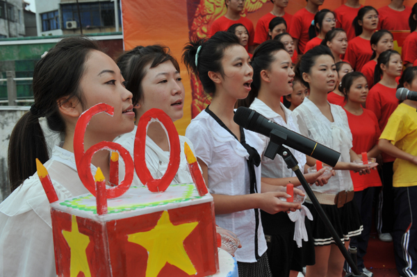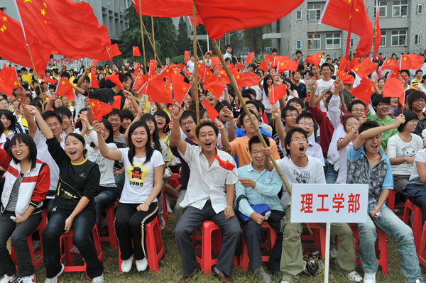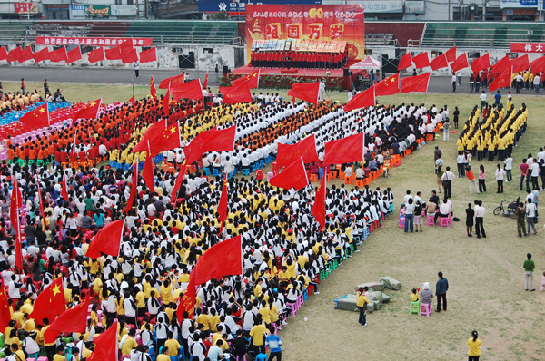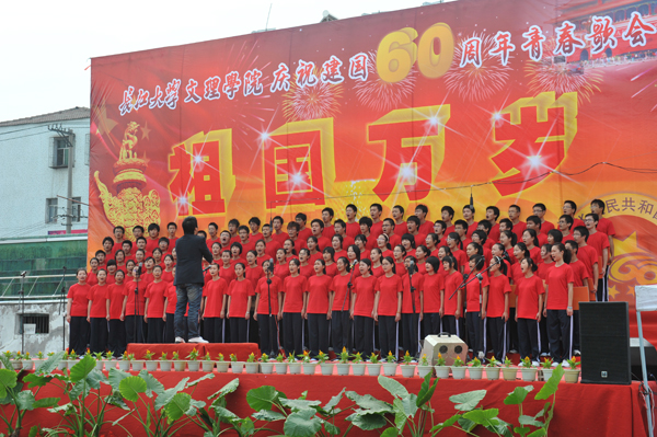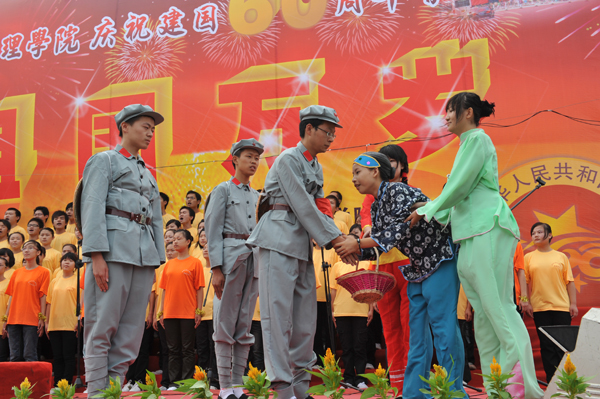 本网讯(员工记者 彭欢)花如海,歌如潮,秋风劲吹,红旗飘扬。“热爱祖国、建设祖国、团结奋进、振兴中华”、“热烈庆祝中华人民共和国成立60周年,伟大的中华人民共和国万岁!”鲜艳的横幅随着火红的灯笼飘扬在学院操场上,9月26日下午的伟德国际1946源于英国,四处洋溢着喜庆的气氛。