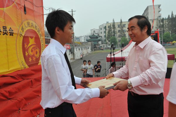 由学院领导和老师共同组成的合唱团以一曲《山丹丹花开红艳艳》将现场气氛带入高潮,经久不息的掌声回荡在美丽的校园里。李刚英老师作为领唱用出色的嗓音和对歌曲的深情诠释征服了台下所有观众。最终,理工学部B组代表队以9.7分的成绩夺冠,管理学部B组代表队和人文学部代表队获得第二名,基础学部A组代表队、理工学部A组代表队和经贸学部B组代表队获得第三名,外语学部代表队获得优秀奖,学院领导沈光明、袁先海、王金琼、汪邦柱等分别为获奖人员颁奖。