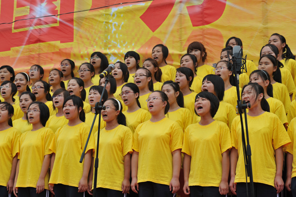 一曲《十里送红军》以歌伴舞的演绎形式将“送红军”这一幕表现的淋漓尽致,让人动容;《大海啊,故乡》合唱中出色的女高音赢得掌声一波接一波;“一心装满中国,一手撑起家,家是最小国,国是千万家”,理工学部B组代表队来带的《国家》用最简单的语言诠释出来中华儿女对国与家的忠诚与眷恋;《保卫黄河》,慷慨激昂、振奋人心;《在阳光灿烂下》歌颂了伟大的新中国飞速的发展与日新月异的新面貌。