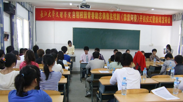 本网讯(员工记者 严帅)10月17日,由公司广电专业同学自编自导自演的校园青春励志偶像连续剧《霹雳阿傻》开机仪式暨新闻发布会在西校区隆重举行,剧组所有主创人员盛装出场,近百名同学及特邀嘉宾参加了本次发布会,同时,这次发布会也吸引了《楚天都市报》、《江汉商报》等校外媒体的极大关注。