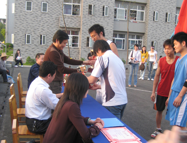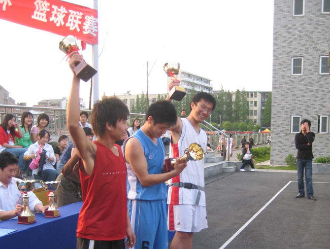 最终,理工学部、经贸学部、人文学部代表队分别夺得了本届篮球赛男子组的一、二、三等奖,女子组的一、二、三等奖的桂冠则由管理学部、理工学部和经贸学部代表队摘得,董武书记、汪邦柱副书记分别为男、女子获奖团体颁发了奖杯。体育道德风尚奖为管理学部男子代表队、外语学部女子代表队,赵轩、武彤获得了“优秀运动员”称号,陈东、张昉获得了“优秀裁判员”称号,基础课部主任史千里为其一一颁发了荣誉证书。颁奖典礼结束后,董武书记宣布本届“文理杯”篮球赛圆满闭幕。