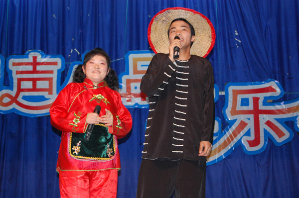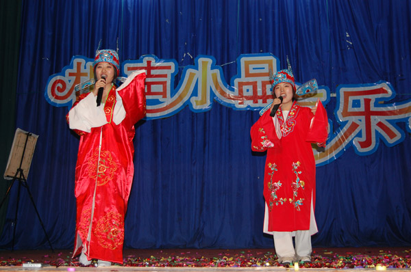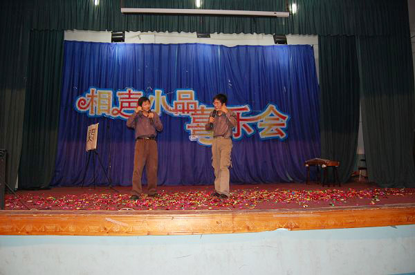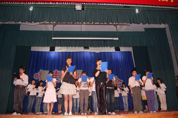 诗言志、歌咏言,在舞台上,表演的同学用歌声与观众对话:黄梅戏《女驸马》、《天女散花》,花鼓戏《刘海砍樵》,江苏民歌《采红菱》……一首首戏曲将传统与现代、古典与时尚完美结合。相声小品《排戏》、《招聘》、《五官争功》等幽默诙谐,表演者深厚的功底使得掌声如潮。而喜乐之余公司师生仍心系四川地震,大型配乐诗朗诵《情系汶川》荡气回肠、催人泪下。