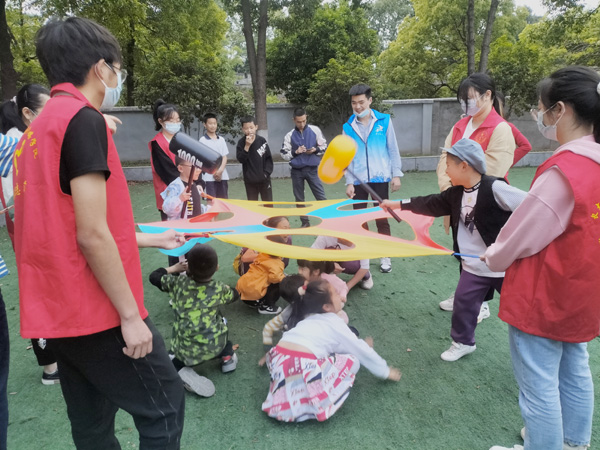 本网讯 5月17日下午,人文与传媒学院携手行志愿者联合荆州区御河社区儿童成长小组前往社区共同开展“让爱留守,伴你成长”主题志愿活动,通过带领小朋友们进行游戏互动,丰富小朋友们的日常生活,培养孩子们的兴趣爱好。(通讯员 唐玉婷 林冰宇 摄影报道)