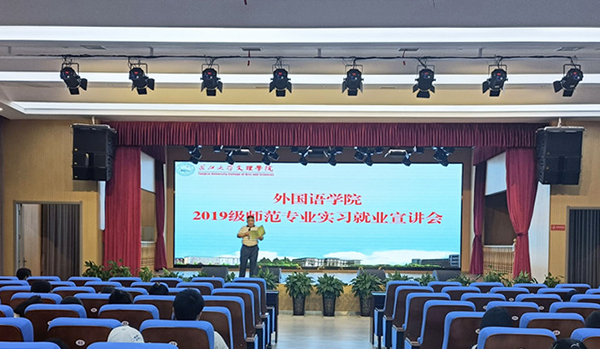 本网讯(通讯员 沈敏 王静怡)5月23日、24日,外国语学院、人文与传媒学院分别在多功能报告厅开展2019级师范专业实习就业宣讲会,广州广畅教育科技有限公司董事长褚继红主讲,教学单位负责人、辅导员和2019级员工参加宣讲会。
