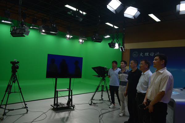 在查阅相关资料后,检查组一行现场检查了录播教室、微格教学平台、新闻演播室、非线性编辑实验室、学前教育手工实训室、员工琴房等,并就实验室安全管理、安全措施落实情况及整改情況进行了详细了解。在人文与传媒学院非线性编辑实验室,检查组认真查看了员工使用操作系统进行视频剪辑、节目创作。