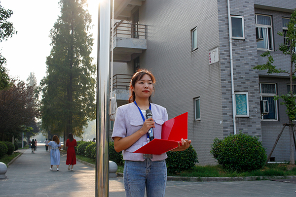 外国语学院英师5202班员工刘鸿萍以《73年风雨路 共启新征程》为题发表国旗下的讲话。她表示,时代造就青年,青年成就时代,生逢盛世的我们有责任和义务挑起时代赋予我们的重任,新时代青年只有把青春奋斗融入到党和人民共同的事业,以实际行动践行“请党放心,强国有我”的青春誓言,才能书写中国之新辉煌,创造中国之新奇迹。(院团委供稿)