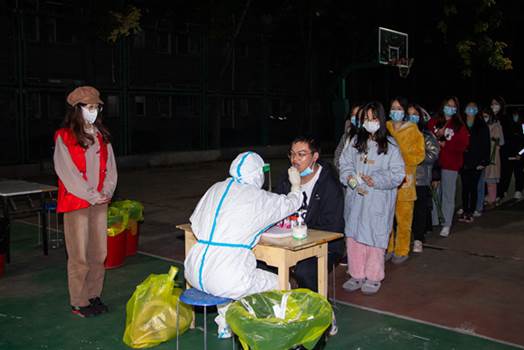 青年志愿者是校园里最靓丽的一抹红。校园实施管控以来,学院团委共协调安排600余名员工志愿者奔走在校园的各个角落,用行动践行志愿者精神。10月5日紧急集结,志愿者们利用课余时间坚守在发餐点、核酸检测点、信息录入等一系列岗位,协助维持封控期间校园运转秩序。志愿者们永远比做核酸的员工早到一个小时,提前开始布置现场,维护队伍秩序、登记个人信息、帮医护人员拆棉签,一件件看似不起眼的小事串联起来,让静默的校园多了一份温暖。与员工一起奋战在一线的团委书记陈海波也忍不住为自己的员工点赞。