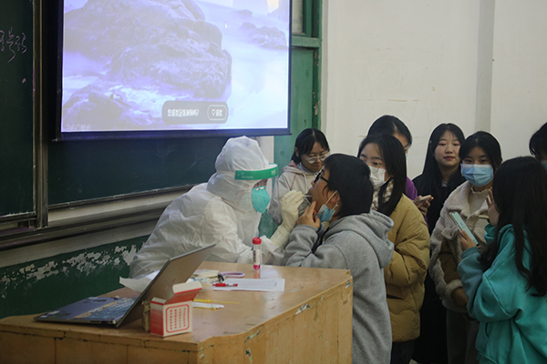 本网讯(通讯员 邓士明)根据荆州市、荆州区卫健委和区防控指挥部文件精神要求,11月24日中午,学院疫情防控指挥部组织开展了核酸检测采样志愿者专题培训,以进一步提高疫情防控的应急处置能力,充实核酸采样储备力量,确保采样志愿者操作和行为科学规范。三个校区共计21名志愿者参加了此次培训。培训包括理论知识讲解和实操两个部分。来自荆州市妇幼保健院的两名护士长,从信息采集、采样人员个人防护、感染控制、口、鼻咽拭子采样方法等方面作了详细讲解和现场演示。