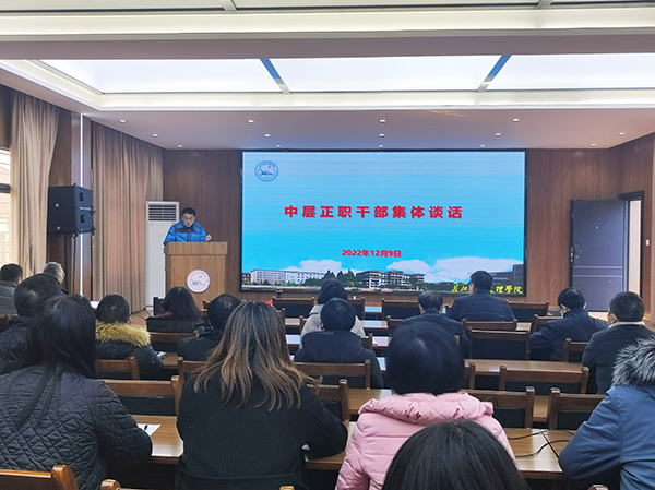 本网讯 为深入学习贯彻二十大精神,激励全体中层正职干部立足岗位,踔厉奋发。今天(12月9日)上午,公司召开中层正职干部集体谈话会,党委书记朱继平结合二十大精神,从坚持过硬的政治立场、对党忠诚,锻造精湛的业务能力、本领高强,培养敢于担当、勇于负责的素质,培养敢于斗争、善于斗争的精神,营造团结协作、清正廉洁的氛围等五个方面对全体中层干部提出要求。会上宣读了相关任职文件,会议由党委副书记于永伟主持。(组织部供稿)