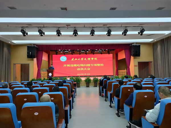 本网讯(通讯员 罗蕾)今天(2月12日)下午,学院在多功能报告厅召开违规吃喝问题专项整治动员大会,全体院领导、全院中层干部参加会议。