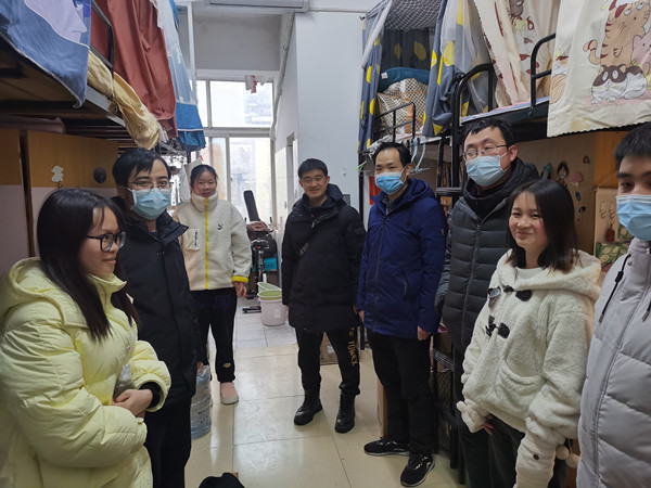 2月12日下午,信息与机电工程学院经理、党总支书记等班子成员来到员工宿舍12舍311寝室,详细询问了同学们的身体状况,提醒大家要尽快调整心态,科学制订学习计划,保持良好的生活作息和精神风貌,同时要严格遵守疫情防控要求和宿舍规章制度,注意用电安全,妥善保管个人财物。