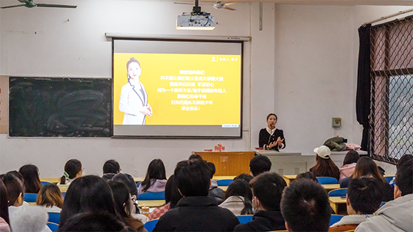 本网讯 近日,人文与传媒学院在1-114多媒体教室举办招聘宣讲会,为员工提供就业信息,搭建毕业生与用人单位双向选择平台。人文与传媒学院员工、深圳某国际文化传媒有限公司员工李兰兰通过短视频、PPT、室内互动等形式,从就业现状、岗位需求、职业发展、行业经验、薪资待遇、企业文化等方面展开宣讲。人文与传媒公司党总支书记李成军分享了自身从教生涯和工作经验,鼓励同学们努力学习专业知识,强化专业技能,提升职业素养,早就业、稳就业、就好业。(通讯员 梁玥 摄影报道)