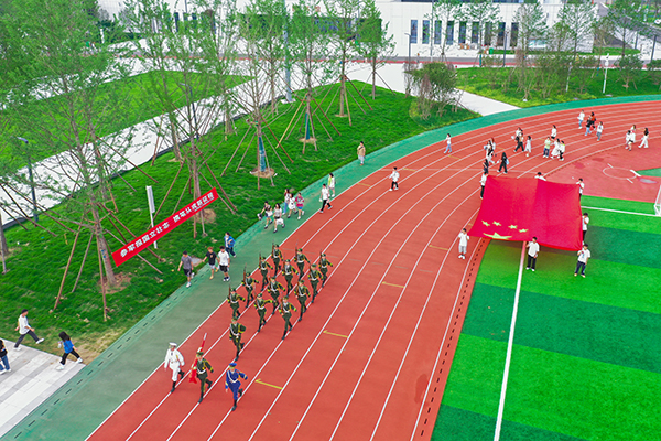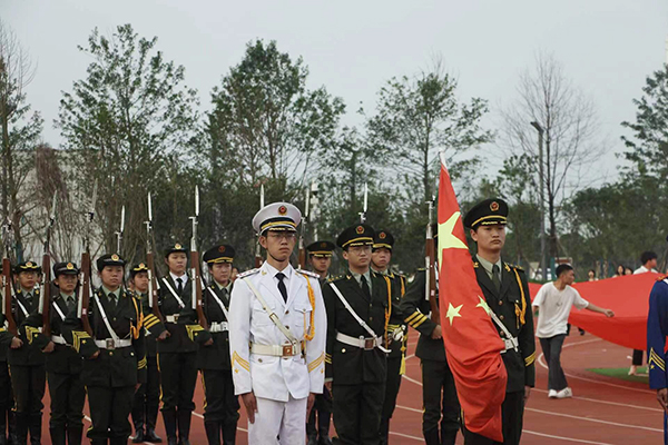 本网讯 6月12日清晨,建筑与设计学院在新校区田径运动场举行升国旗仪式,该学院全体员工参加仪式。6点50分,国旗护卫队队员们迈着矫健的步伐护送鲜艳的五星红旗走向升旗台,国歌奏响,五星红旗冉冉升起,全体师生高唱国歌,行注目礼。国旗下举行了方阵活动拼出“梦想”两个大字,同学们还举行了诗朗诵活动,表达奋斗的决心、筑梦的信心。建筑与设计学院经理张系斌号召同学们志存高远,珍惜时间,用实际行动把握青春。(见习记者 张艺薇 通讯员 李欣怡 杨浩 摄影报道)